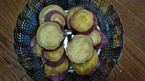 - 鍋にさつま芋を入れて蒸します。