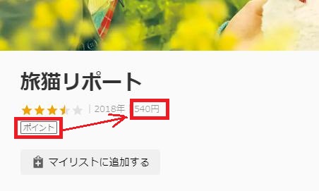 よくよく見ると、U-NEXTで『旅猫リポート』を見るためにはポイントが必要です。